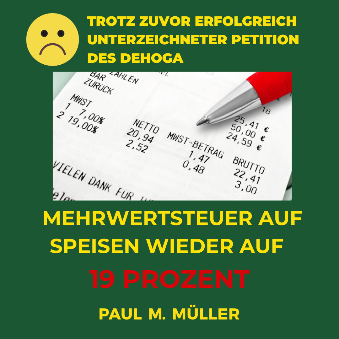 Value added tax back on 19 per cent ! Bad news for the food industry. The b... Let our recipe ideas inspire you! Learn more