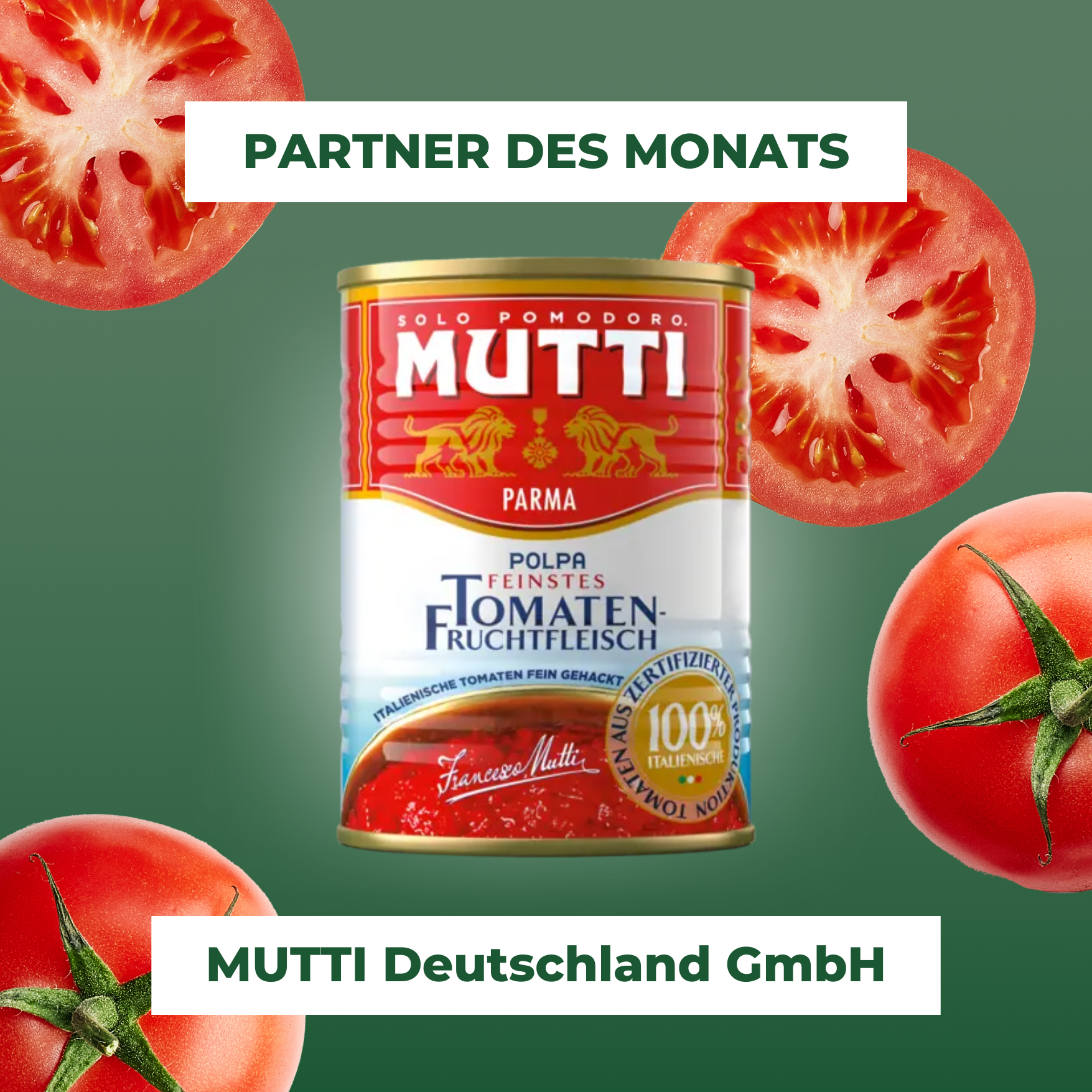 Partner des Monats: Mutti Deutschland GmbH In sechs Stunden – vom Feld in die Dose. Das geli… Lassen Sie sich durch unsere Rezeptideen inspirieren! Mehr erfahren